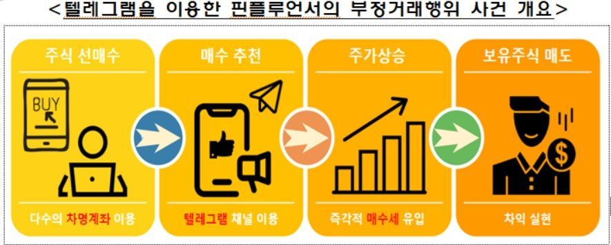 이번에 적발된 핀플루언서 A씨는 텔레그램 채널에서 특정 주식명을 게시하면 순간적으로 대규모 매수세가 유입되는 점을 이용했다.