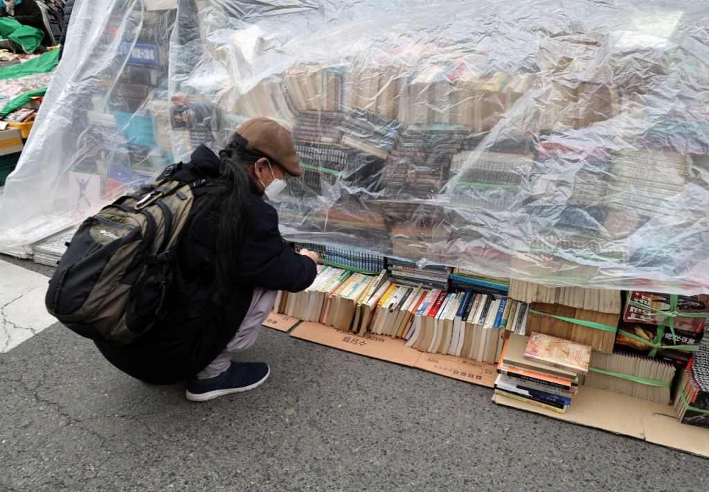 비가 와서 종묘시장 헌책방 주인은 책에 비닐을 덮었다. 손님은 계속 책을 찾았다. 비 조금 온다고 책 찾는 일을 멈출 수 없다.