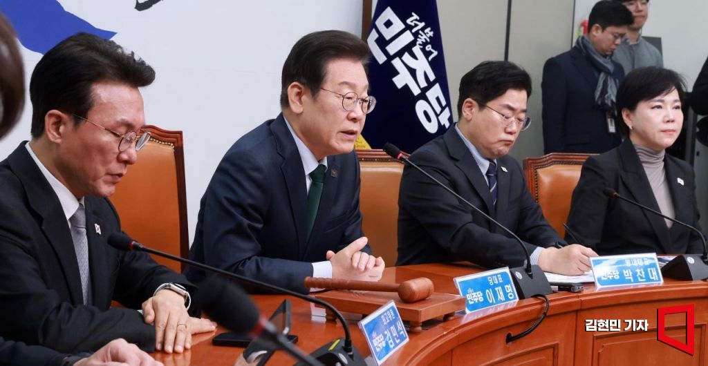 이재명 더불어민주당 대표가 24일 국회에서 열린 최고위원회의에 참석하고 있다. 2025.2.24 김현민 기자