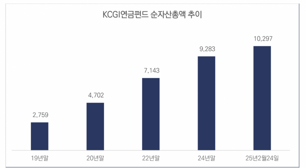 KCGI 운용은 운용 중인 연금펀드 순자산이 1조원을 돌파했다고 5일 밝혔다.