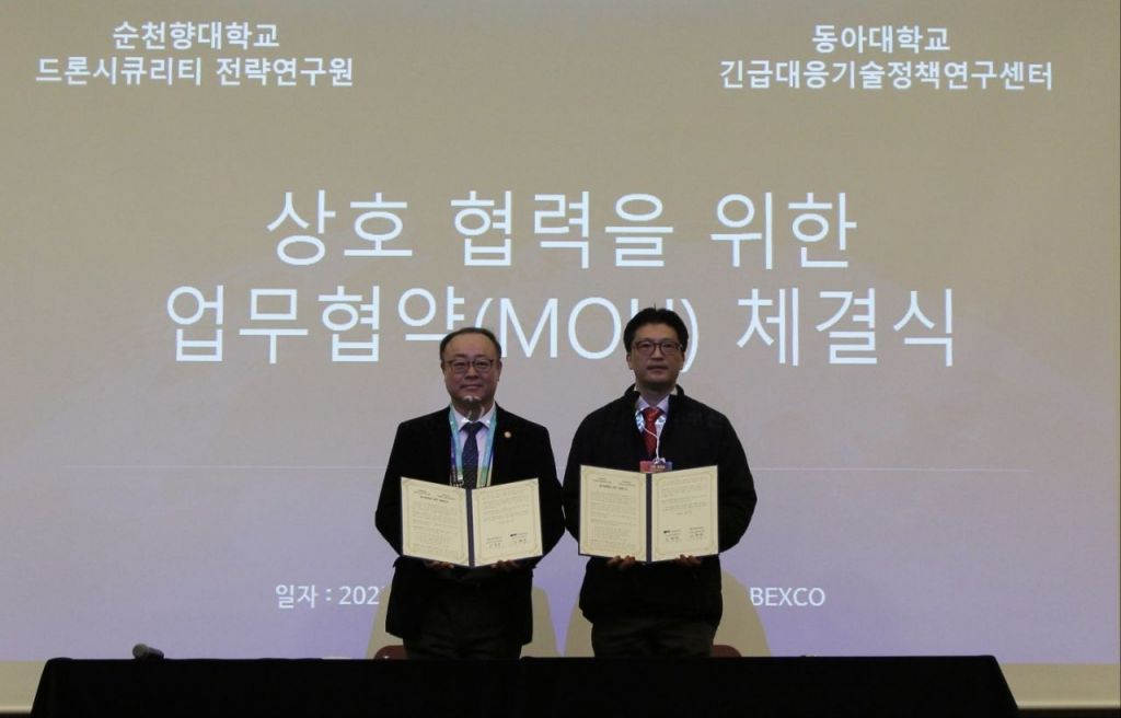 동아대학교 긴급대응기술정책연구센터(소장 이동규 교수)는 순천향대 드론시큐리티전략연구원(원장 이병석)과 드론 시큐리티 분야 산학 ·연구 협력을 위한 업무협약을 체결했다.