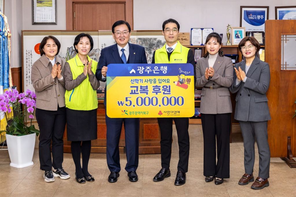 광주은행(은행장 고병일)은 광주 북구에 ‘신학기 사랑을 입어요’ 교복 후원 행사를 진행, 후원금 500만원을 전달했다고 5일 밝혔다.