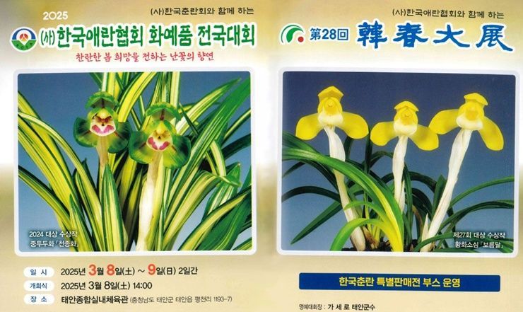꽃피는 봄의 시작을 맞아 충남 태안군 태안종합실내체육관에서 8~9일 이틀간 ‘한국춘란 화예품 전국대회’가 개최된다.