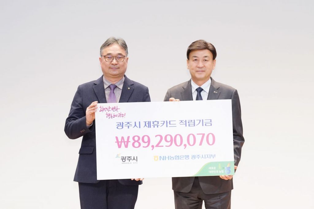 NH농협은행 광주시지부는 지난 4일 광주시청 수어장대홀에 열린 3월 직원 월례회의에서 지난 한 해 동안 광주시민, 공직자 등이 적립한 제휴카드 적립금 8929만70원을 광주시에 전달했다고 5일 밝혔다.