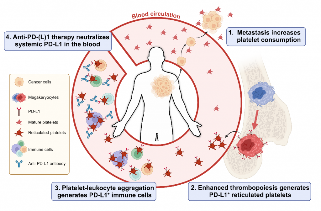 이번 연구는 혈소판의 PD-L1 발현이 단순히 종양 미세환경에 국한된 현상이 아니라, 암 전이, 종양 성장, 염증 반응 등 다양한 암 관련 조건에서 발생하는 전신적 면역억제 현상을 설명하는 새로운 기전임을 밝혀냈다.