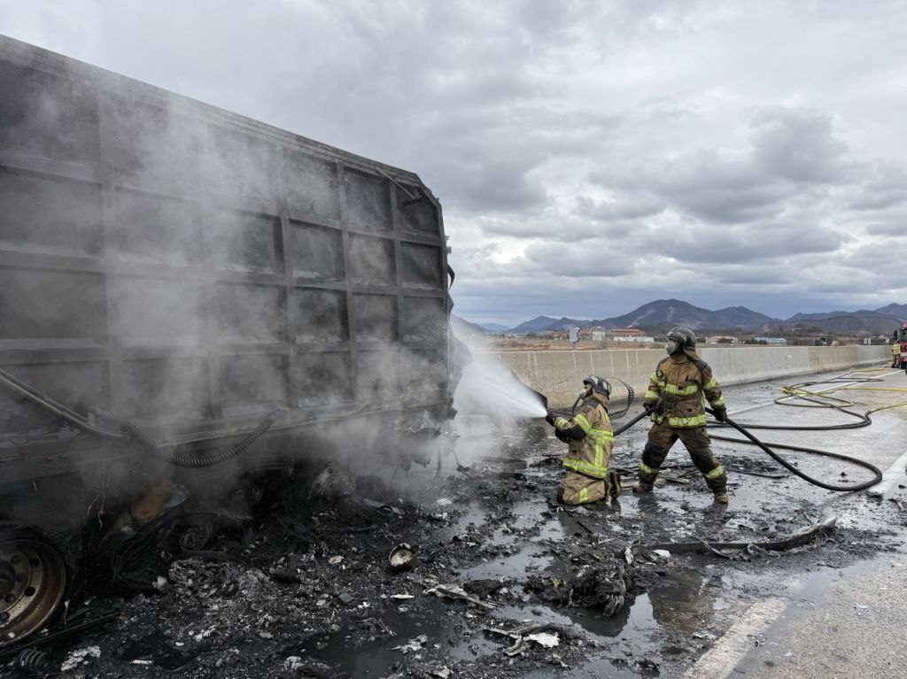 불은 출동한 소방 당국에 의해 오후 4시 13분께 모두 꺼졌지만 사고 여파로 사고 지점 후방 10㎞ 구간에 차량 정체가 빚어졌다.
