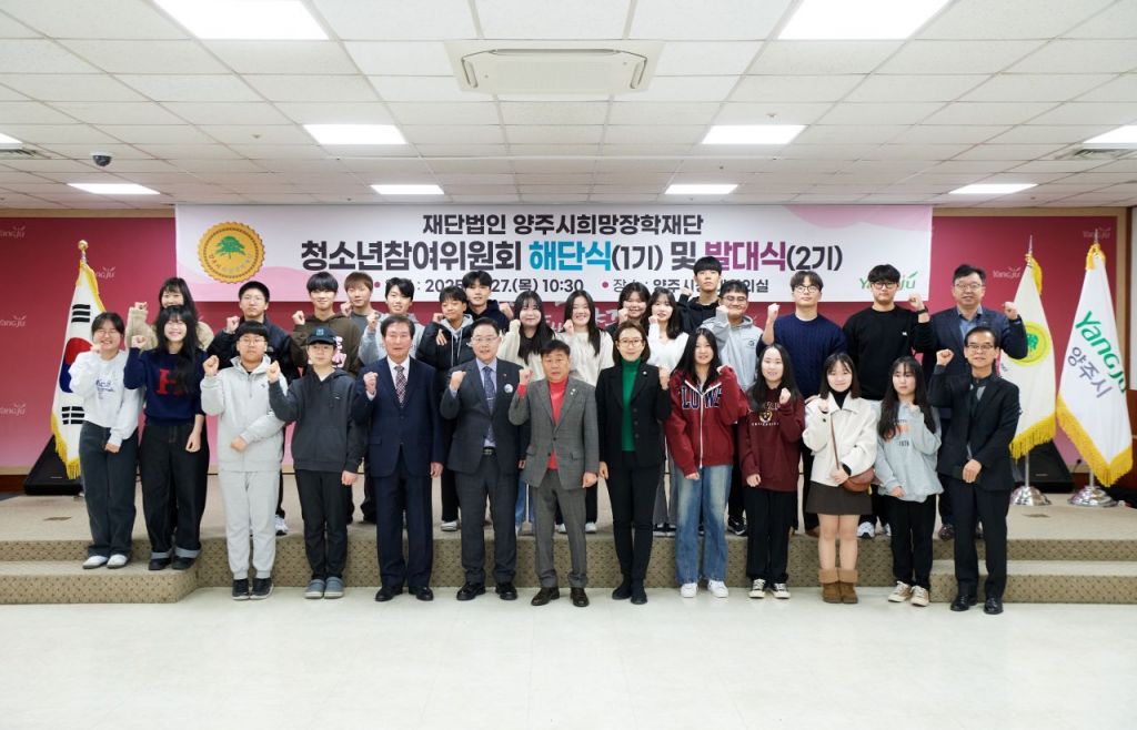 강수현 양주시장이 최근 시청 대회의실에서 ‘양주시희망장학재단(이사장 이진규)’이 주관한 ‘2025년도 청소년참여위원회 해단식 및 발대식’에 참석해 위원들의 적극적인 참여와 노력을 격려하고 앞으로의 활동을 응원했다.