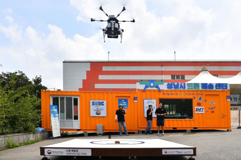 성남시 드론배송센터에서 비가시비행으로 물품을 배송하는 드론 모습. 성남시 제공