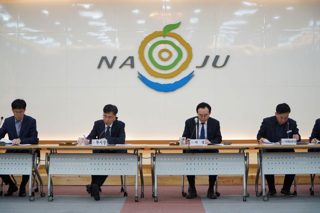 6일 나주시에 따르면 지난 5일 시청사 대회의실에서 윤 시장 주재로 부시장, 국·소·실 전 부서 간부 공무원 55명이 참석한 가운데 업무 보고회가 열렸다.