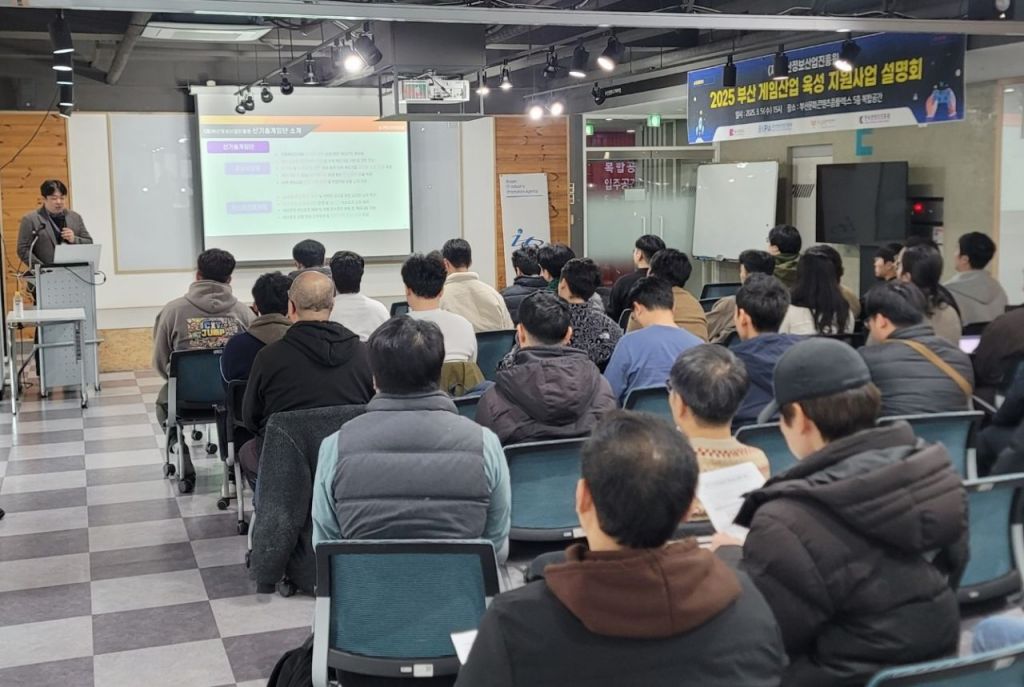 부산시와 부산정보산업진흥원은 지난 5일 부산 지역 게임사와 예비 창업자 등을 대상으로 '2025년 부산 게임산업육성 지원사업 설명회'를 부산문화콘텐츠콤플렉스에서 개최했다.