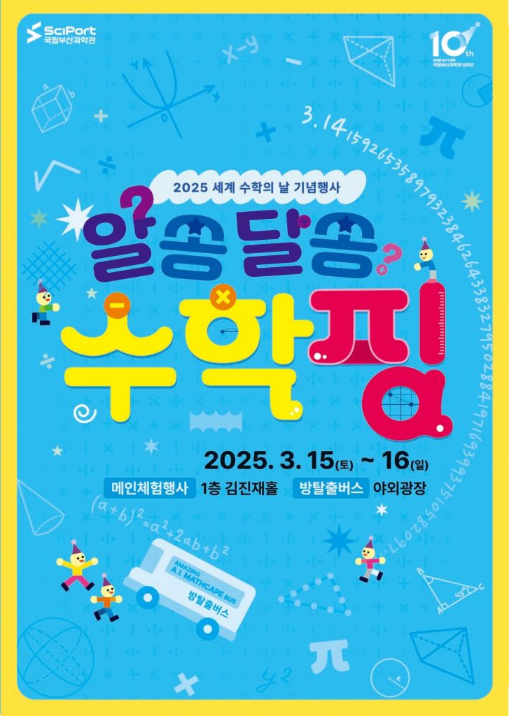 국립부산과학관(관장 송삼종)은 세계 수학의 날을 기념해 수학 체험 행사 ‘알쏭달쏭 수학핑’을 오는 15일부터 16일까지 국립부산과학관에서 개최한다.
