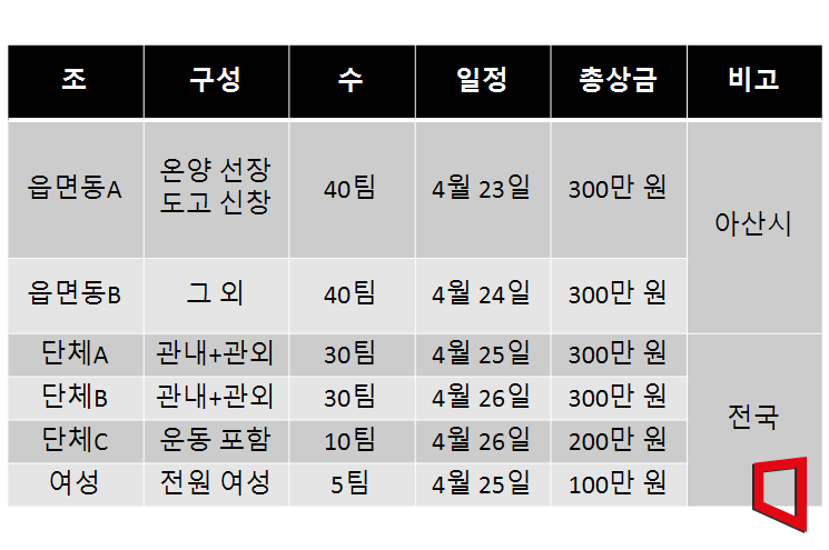 신청은 담당자 이메일을 통해 가능하며, 상금 등 더 자세한 사항은 홈페이지 공고와 시 체육진흥과에 문의하면 된다.