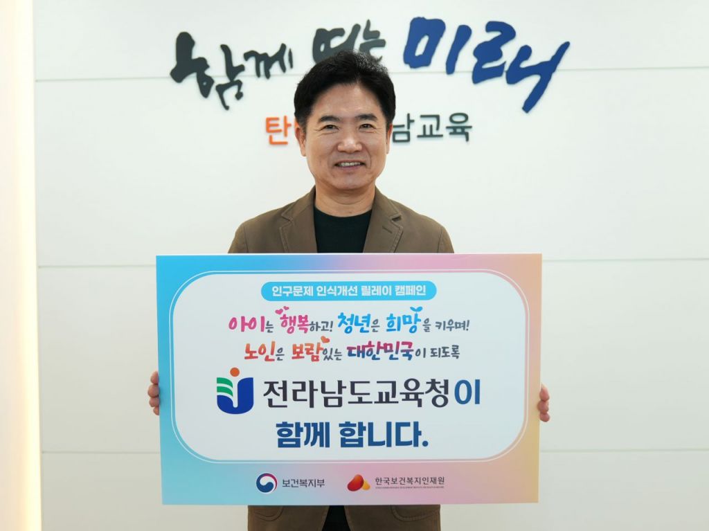 김대중 전남교육감이 6일 저출생과 고령화에 따른 인구 감소 문제에 대한 사회적 인식을 제고하기 위한 ‘인구문제 인식 개선 릴레이 캠페인’에 동참했다.