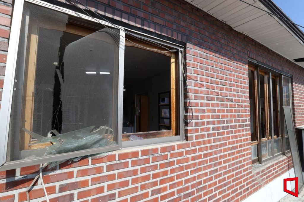 6일 경기 포천시 승진훈련장에서 열린 한미연합훈련 중 포탄이 민가에 떨어져 인명 피해가 발생한 가운데 사고를 입은 한 민가에 유리창 깨져 있다. 사진공동취재단