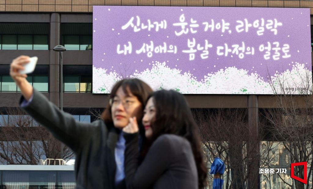교보생명은 봄을 맞아 광화문 글판을 허수경 시인(1964∼2018)의 시 ‘라일락’ 문장으로 새단장했다고 6일 밝혔다.