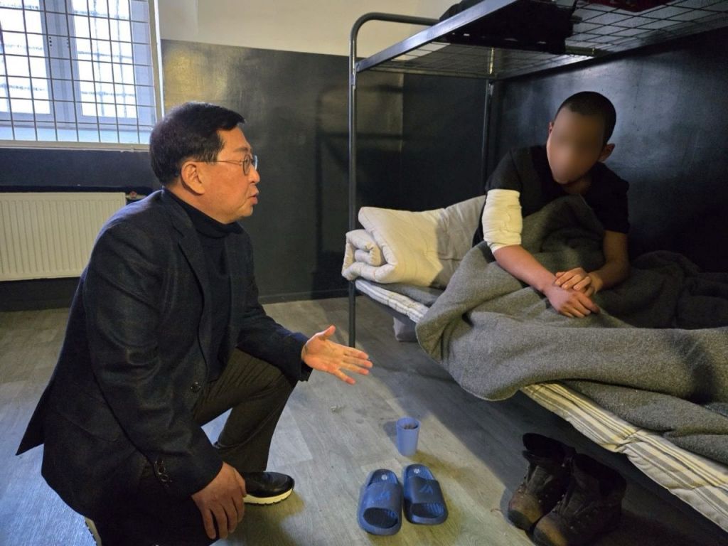 국민의힘 유용원 의원이 지난 4일 우크라이나군에 생포된 북한군 포로를 면담하고 있다. 유용원 의원실 제공, 연합뉴스