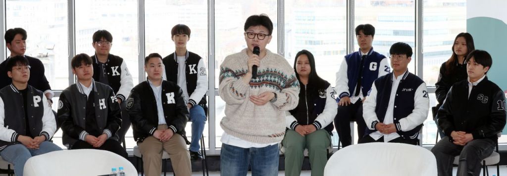 국민의힘 한동훈 전 대표가 6일 서울 서대문구 코지모임공간 신촌점에서 열린 2025 대학생시국포럼 백문백답 토론회에서 '대한민국, 그리고 미래세대'를 주제로 강연하고 있다. 연합뉴스