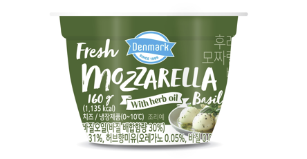 '덴마크 후레쉬 모짜렐라 바질'은 모짜렐라 치즈를 바질 오일에 마리네이드(식재료를 조리하기 전 양념장에 재워 두는 것)해 고소하고 산뜻한 풍미를 느낄 수 있는 제품이다. 모짜렐라 치즈는 한입 크기로 담겨 별도의 조리 없이 간식이나 안주로 즐길 수 있다. 바질 오일은 파스타 소스, 샐러드 드레싱으로도 활용할 수 있다. 덴마크 후레쉬 모짜렐라 바질의 용량은 160g이며, 가격은 7480원이다.