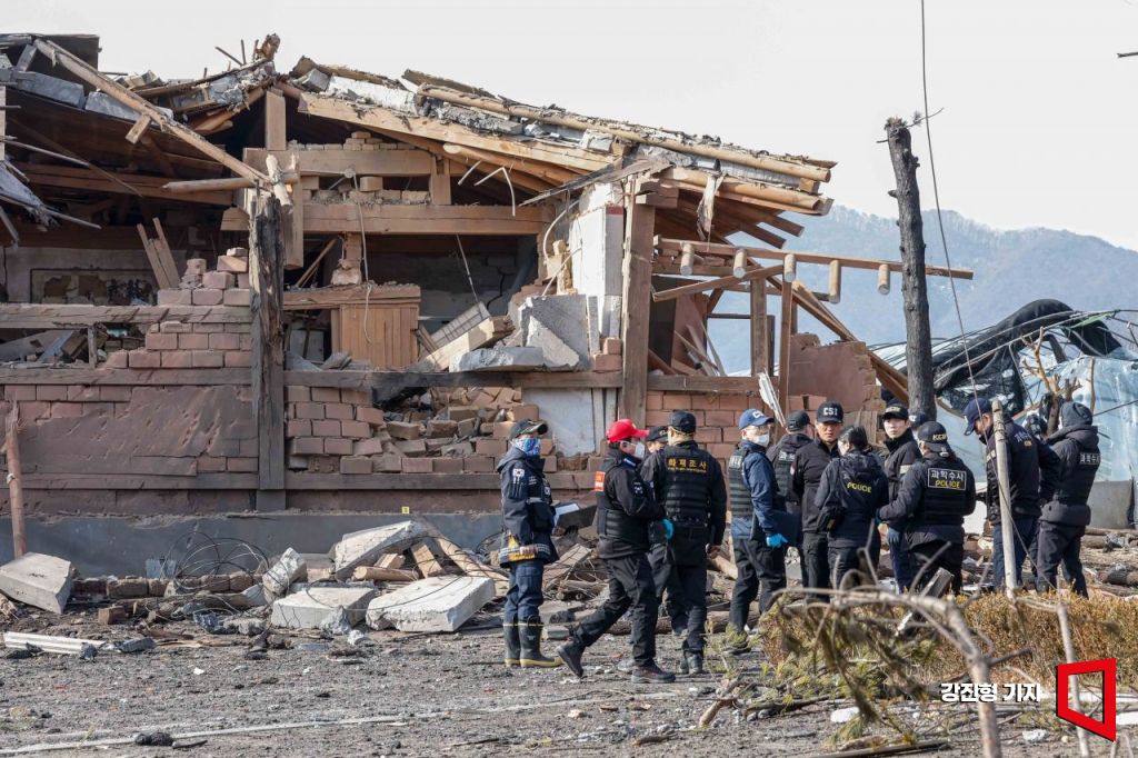 포천 승진훈련장에서 열린 한미연합훈련 중 포탄이 민가에 떨어져 인명 피해가 발생한 가운데 7일 경기 포천 이동면 노곡리 민가에서 합동감식반이 현장감식을 하고 있다. 2025.3.7. 강진형 기자