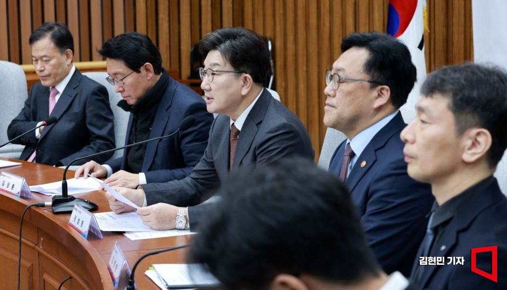 권성동 국민의힘 원내대표가 7일 국회에서 열린 '가상자산시장의 건전한 발전을 위한 정책과제' 민당정간담회에서 발언하고 있다.