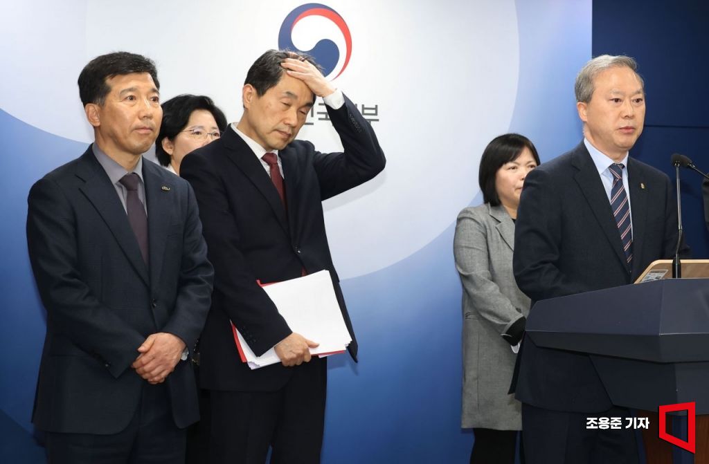 의과대학 선진화를 위한 총장협의회 회장단 양오봉 전북대 총장이 7일 서울 종로구 정부서울청사에서 학생 복귀 및 의대교육 정상화 브리핑을 하고 있다.