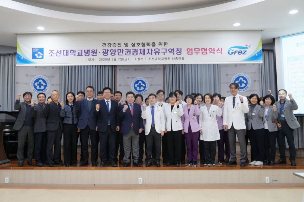 조선대병원(병원장 김진호)과 광양만권경제자유구역청(청장 구충곤)은 유기적 협력을 통한 상호 발전을 위해 업무 협약을 진행했다고 7일 밝혔다.