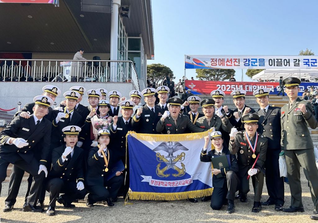 이와 함께 국립부경대 해군학군단 조시은 해군 소위(정치외교학과 21학번)는 합참의장상, 김병준 해병대 소위(국제경영학과 21학번)는 해병대사령관상을 받았다. 이들은 지난 2년간 군사훈련과 학업을 병행하며 탁월한 리더십과 군사적 역량을 발휘해 전국 학군단 후보생 중에서도 최고의 성과를 거뒀다.
