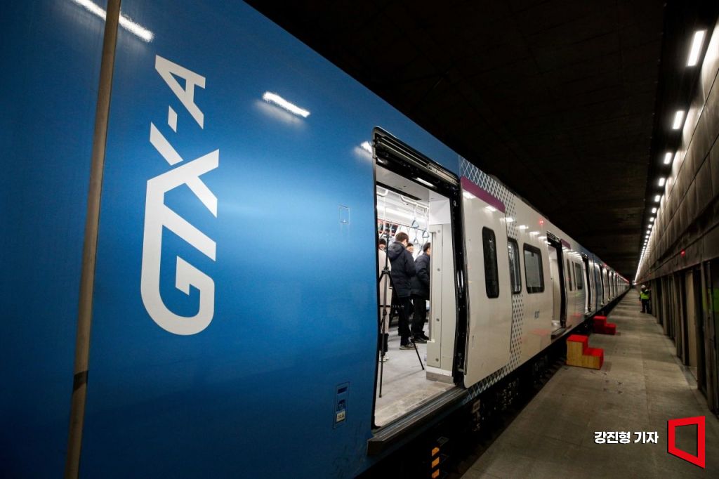 경기 화성 동탄역 승강장에서 공개된 GTX-A 초도차량. 사진=강진형 기자aymsdream@