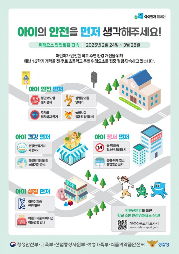 올해 개학기 중점 정비 지역은 초등학교 주변 ▲어린이보호구역(주 출입문 300m)' ▲'교육환경법'상 교육 환경 보호구역(경계선 300m) '어린이식생활법'상 식품안전보호구역 등 상가 및 유흥업소 등이 밀집한 가로변 도로 등 통학로 일대를 중점적으로 실시한다.