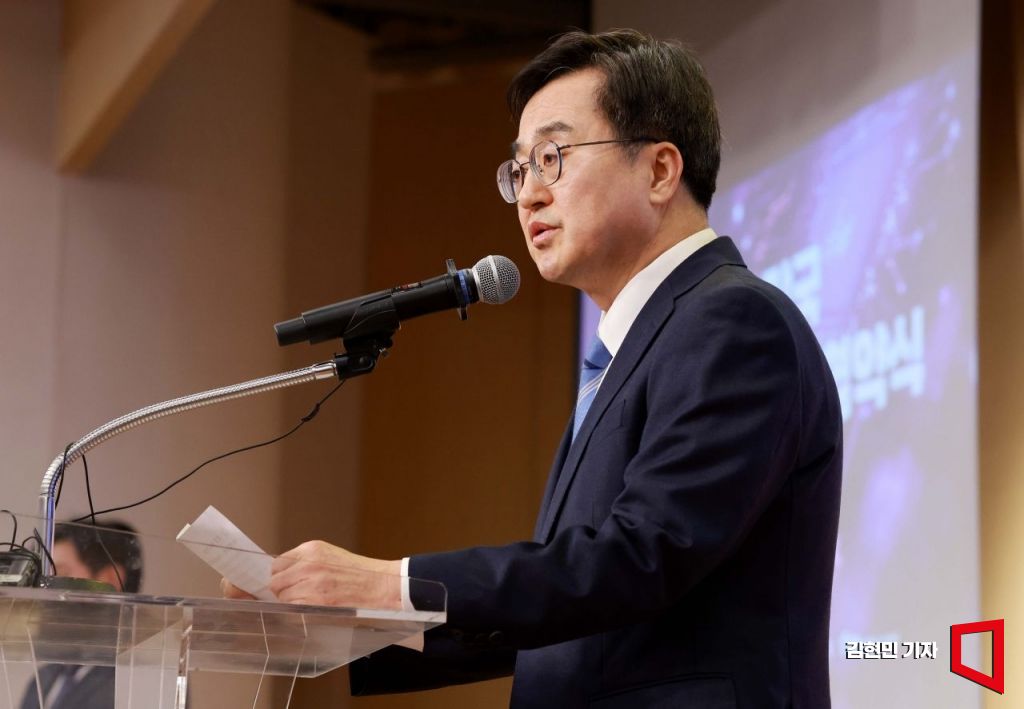 김동연 경기도지사가 18일 국회 도서관에서 열린 종합 반도체 강국 도약을 위한 정책협약식에서 인사말하고 있다. 김현민 기자