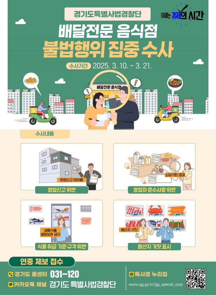 경기도가 이달 10일부터 21일까지 배달 전문 음식점을 대상으로 불법행위를 집중 수사한다.