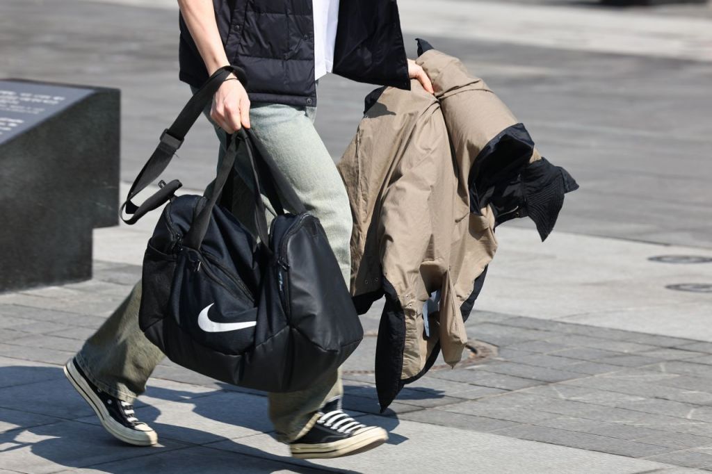 서울 종로구 광화문 네거리에서 한 시민이 외투를 손에 들고 이동하고 있다. 연합뉴스