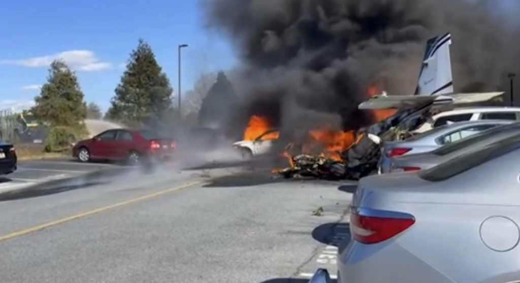 사회관계망서비스(SNS)에 공유된 당시 현장 상황이 담긴 영상을 보면 주차장에 떨어진 잔해에서 검은 연기가 피어오르고, 여러 대의 차량이 화염에 휩싸인 모습이 담겨 있다.