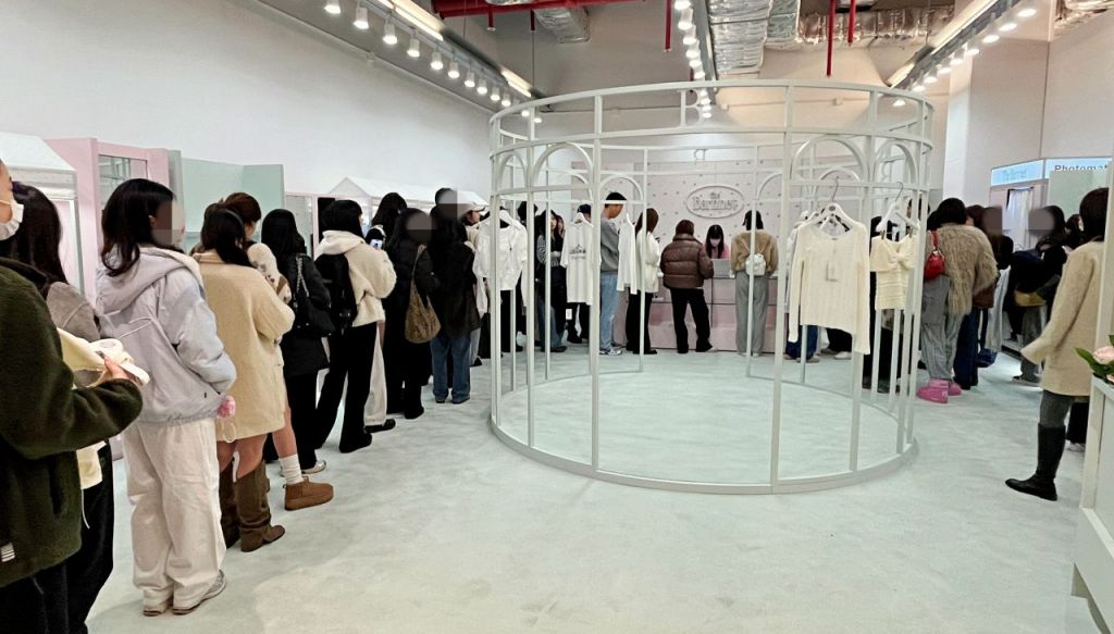 잠실 롯데월드몰 지하1층 '더바넷' 팝업스토어에서 고객들이 제품을 구매하기 위해 줄을 서있다. 롯데백화점 제공.