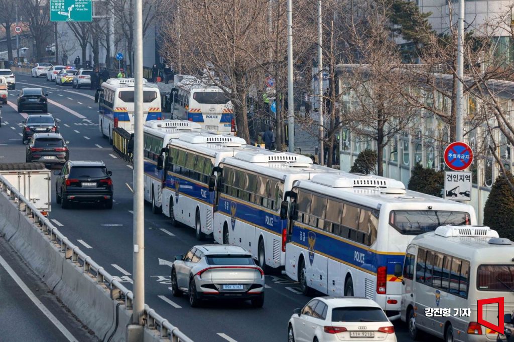 [포토] 대통령 관저 앞에 세워진 경찰버스