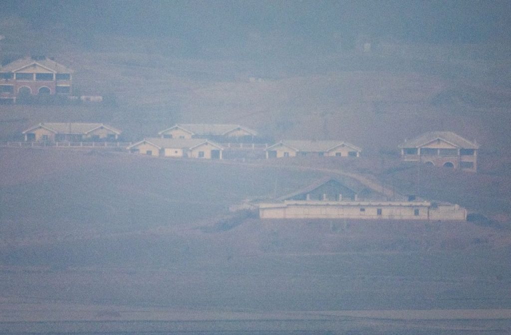 북한 김정일 국방위원장의 생일인 16일 경기도 파주 오두산통일전망대에서 바라본 북한 황해북도 개풍군이 안개에 싸여 있다. 2025.2.16 연합뉴스