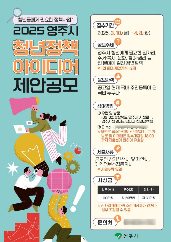 경북 영주시(시장 박남서)가 지역 맞춤형 청년정책 발굴을 위해 오는 4월 8일까지 ‘2025년 청년정책 아이디어 제안 공모전’을 실시한다.
