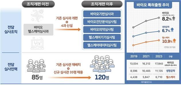 이 과정에서 특허청은 신규 채용한 35명의 심사관과 기존 심사국에 흩어져 활동하던 바이오 분야 심사관 85명을 전담 심사조직에 집중적으로 배치해 보다 효율적이고 일관된 특허 심사가 가능하도록 했다. 120명의 바이오 분야 심사관이 심사 역량을 결집해 협의 심사 등으로 심사 품질을 높이도록 한 것이다.