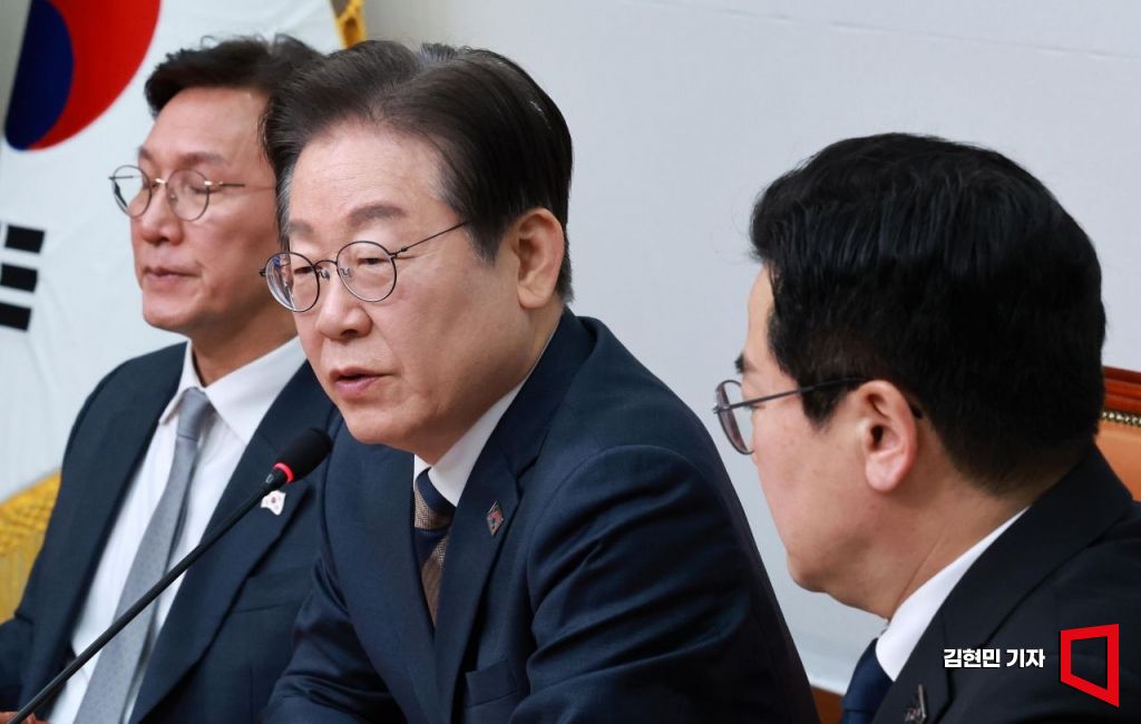 이재명 더불어민주당 대표가 10일 국회에서 열린 최고위원회의에서 발언하고 있다.