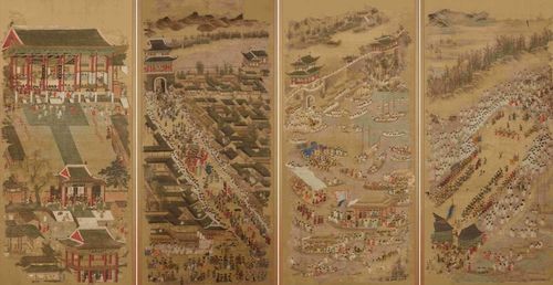 국외소재문화유산재단은 삼성문화재단과 함께 미국 피보디에식스(Peabody Essex) 박물관이 소장한 '평안감사도과급제자환영도'(平安監司道科及第者歡迎圖) 8폭 병풍을 새롭게 공개한다고 10일 밝혔다. 리움미술관 보존연구실에서 1년4개월여간의 보존 처리를 마친 후 첫 공개다.