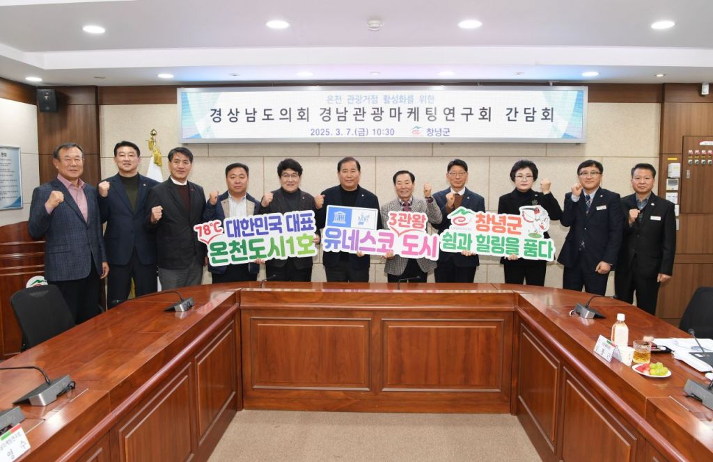 경남 창녕군은 경상남도의회 의원 연구단체인 ‘경남관광마케팅연구회’가 지난 6일부터 7일까지 창녕군을 방문해 온천 관광 거점 활성화 방안을 논의했다고 10일 밝혔다.