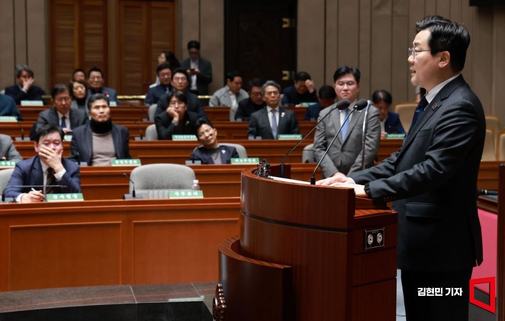 박찬대 더불어민주당 원내대표가 10일 국회에서 열린 비상의원총회에서 발언하고 있다.
