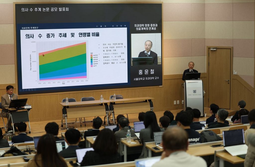 의과대학 정원 증원으로 촉발된 의정 갈등 사태가 계속되는 가운데 진행된 새로운 의사 수 추계 연구에서도 증원하지 않으면 향후 의사 수가 부족하다는 의견과 증원하지 않아도 초과 공급될 것이라는 의견이 엇갈렸다. 전문가들은 다만 의사 수를 늘리는 것만으로는 의료의 수요·공급 불균형 등 당면 문제를 해결할 수 없다는 데 공통된 의견을 내놓았다.