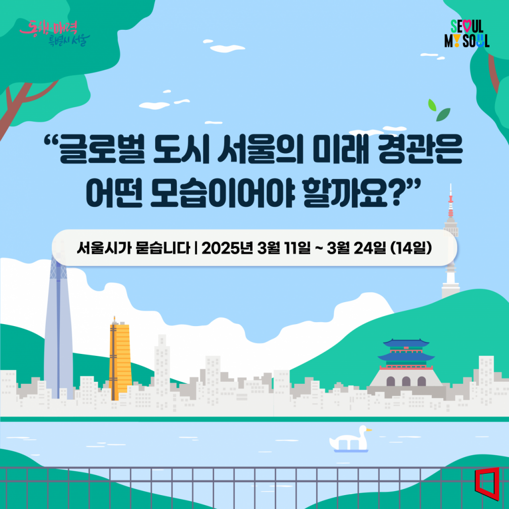 이번 의견수렴은 11일부터 24일까지 진행된다. 서울의 도시경관을 평가하고 주요 문제점을 진단하는 한편, 변화하는 도시환경에 맞춰 경관의 발전 방향을 설정하는 데 초점을 맞춘다. 시는 '2040 서울도시 경관계획'의 미래상을 구체화하고 체계적인 도시경관 관리 방안을 마련할 예정이다.