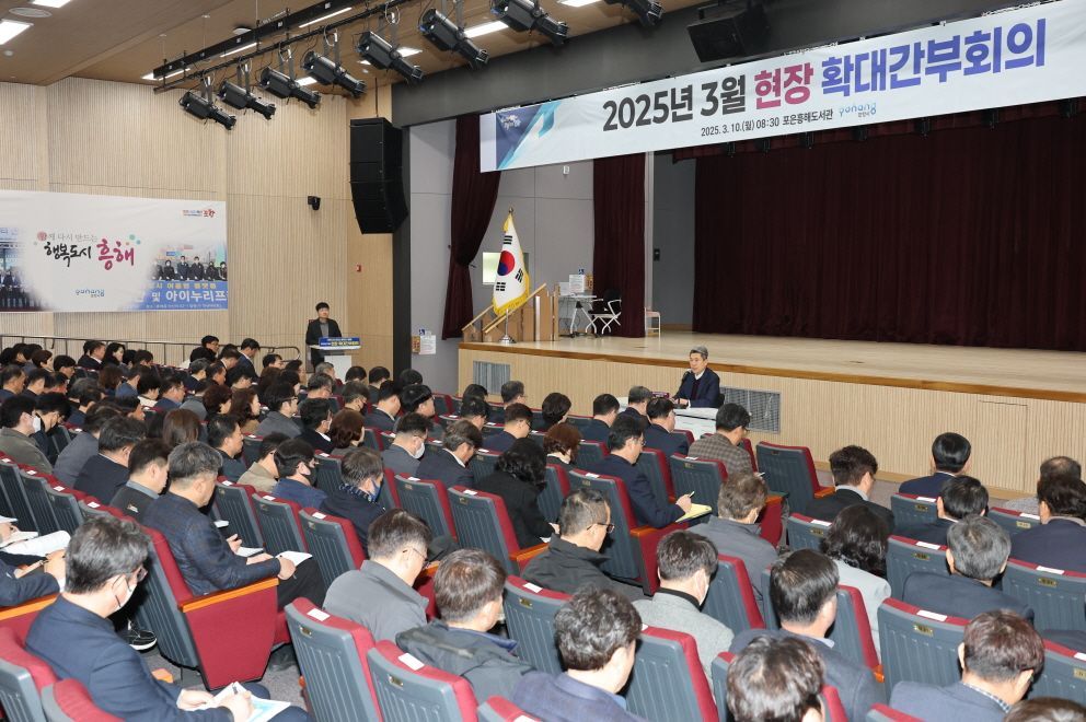포항시는 10일 포은흥해도서관 음악강당에서 이강덕 시장 주재로 3월 현장 확대간부회의를 개최했다.