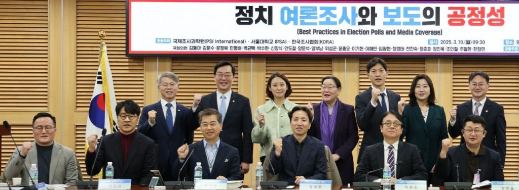 10일 국회의원회관 제2세미나실에서 더불어민주당 민형배 의원과 국제조사과학원(PSI), 서울대학교 IPSAI 공동주최 ‘정치 여론조사와 보도의 공정성’ 토론회가 여론조사기관과 언론사, 학계 전문가들이 참석한 가운데 열렸다. 민형배 의원실 제공