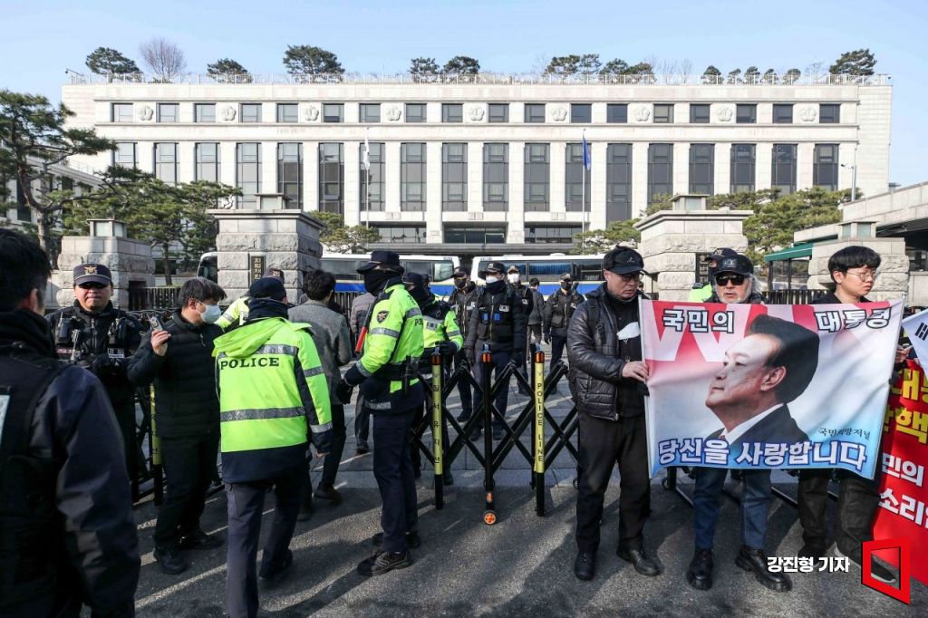 윤석열 대통령 탄핵심판 선고가 임박한 11일 서울 종로구 헌법재판소 주변에 경찰 경계가 강화되고 있다.