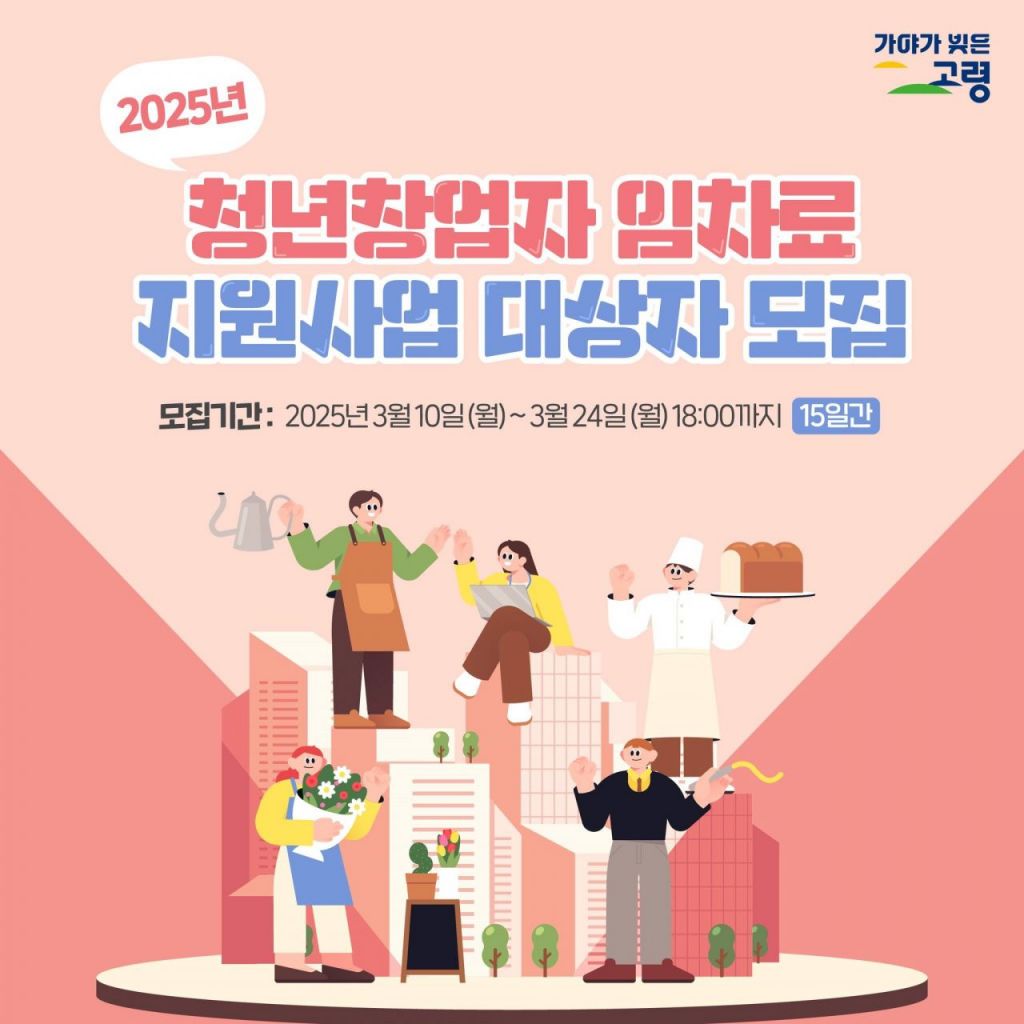 경북 고령군은 지난 10일부터 24일까지 15일간 '2025년 청년창업자 임차료 지원사업' 대상자를 모집한다.