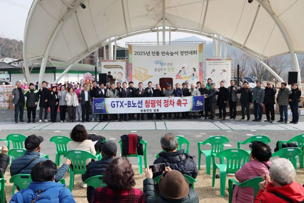 11일 가평군에 따르면 이날 행사에는 서태원 군수, 김경수 가평군의회 의장과 의원, 임광현 경기도의회 의원 등 주요 인사들이 참석해 주민들과 함께 윷놀이·떡메치기·투호 등 다양한 전통놀이를 체험하며 화합을 다졌다. 특히 퍼포먼스를 통해 주민들은 GTX-B 노선 청평역 정차의 필요성을 강조하며 적극적인 유치 활동을 이어가기로 뜻을 모았다.