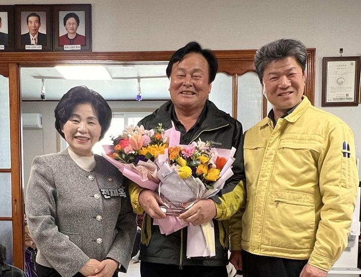 이날 마을회관에서 열린 시상식에서 전재옥 의장은 안 이장에게 표창패를 전달했고 마을 주민들도 수상을 축하했다.